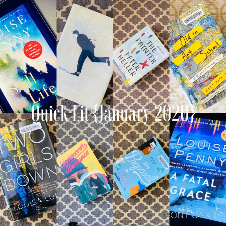 - Two Girls Down by Louisa Luna. This is the first book about PI Alice Vega. I read this because I’m interested in Luna’s second book about Vega, The Janes, released January 21, which Anne Bogel previewed in her Winter Preview. She said that she was hooked from the first line. Plus, this is my fourth crime mystery (not a genre I usually read) this month and I might be a bit over it. I have placed The Janes on hold at my local library. We will see what kind of headspace I am in when it comes in.